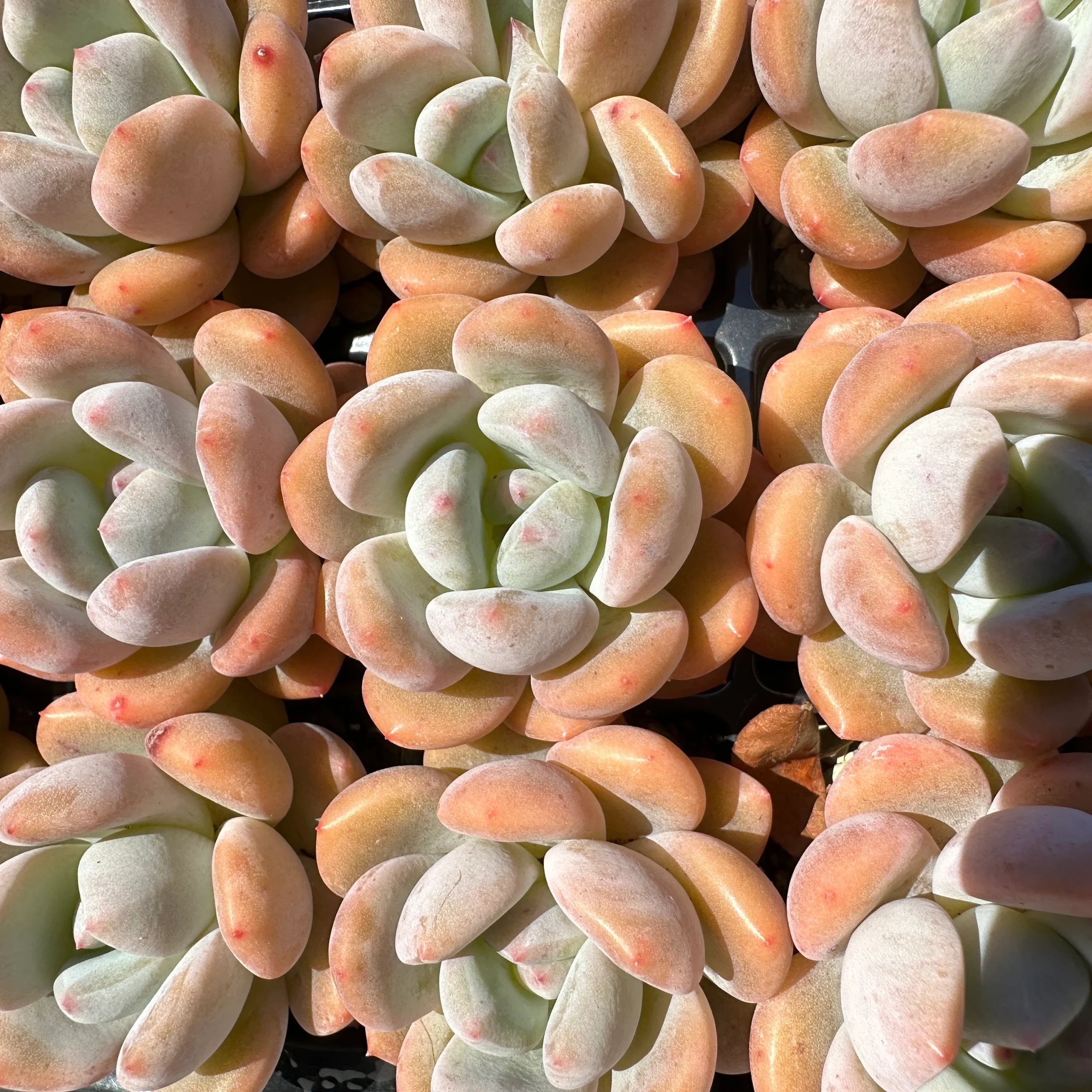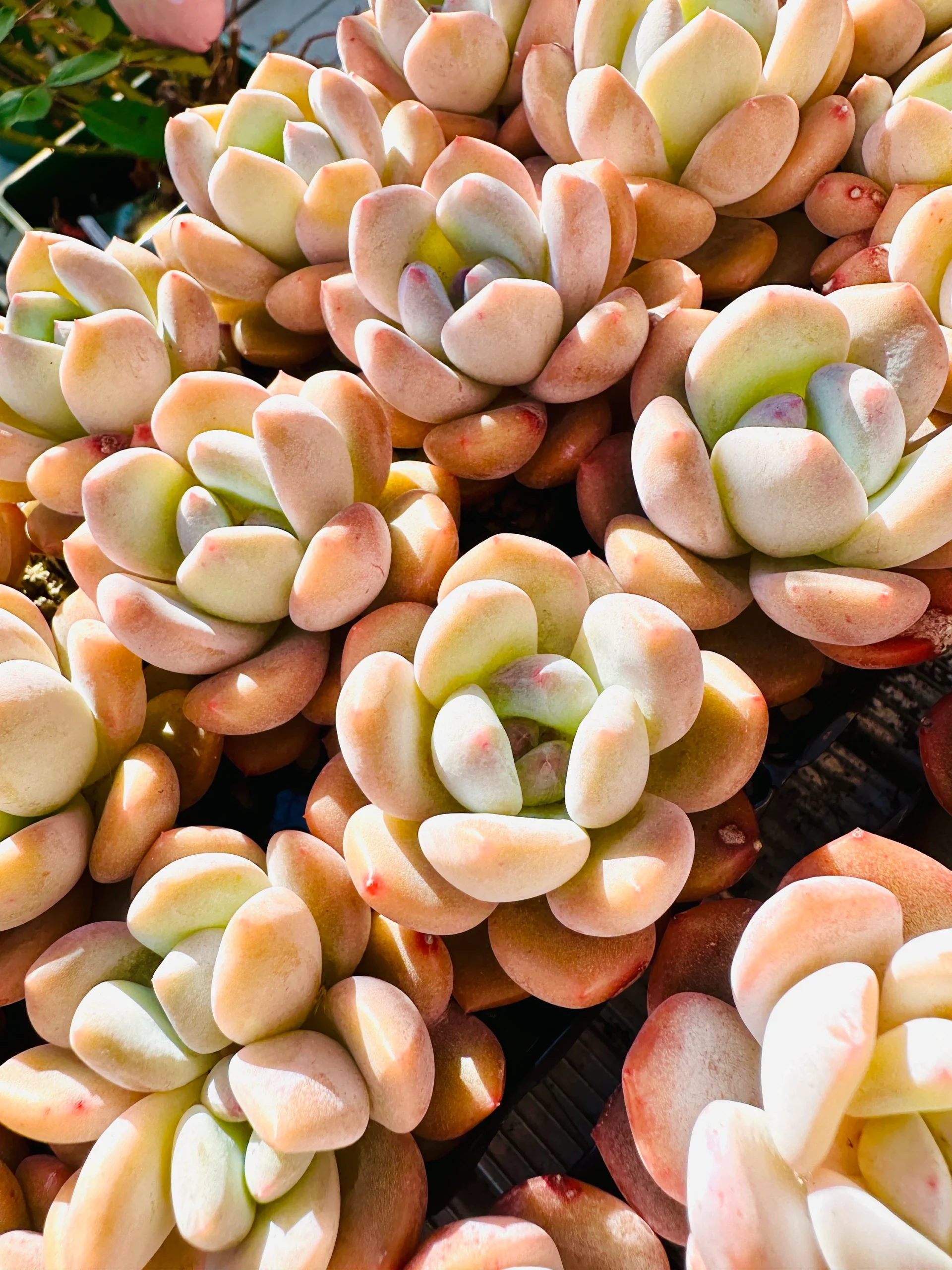 Note: The succulent colors may fade during winter without proper grow lights, but they regain their vibrant colors in spring and fall under natural sunlight.
